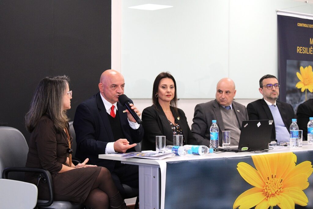 Controle Externo – O presidente da Fenastc, Amauri Perusso, encerrou as falas dos convidados, lembrando que há uma discussão planetária sobre a nova ordem internacional, debatida recentemente pelos BRICS, que busca superar o grau de desigualdade entre as ações e, em breve, haverá a COP30 que tratará da crise climática, que ameaça a vida humana. “E o Controle Externo precisa estar atento a tudo isso, e precisa dialogar com a sociedade. Além disso, nesse momento há graves sinais de corrupção, entre os quais a deformação do orçamento público federal que está sendo manuseado para atender interesses eleitorais”. Por fim, destacou que escrever e publicar revistas é um ato importante de afirmação política. “Quem olhar para as revistas do CEAPE verá um caminho de construção de consciência, de defesa da categoria e relacionamento com a sociedade”, pontuou.